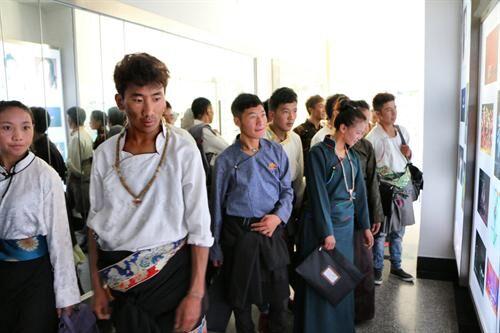 第二天,我满怀期待地来到继续教育学院,一眼看到一群穿着藏族服装的青年男女在走动。我兴奋地跑了进去,五彩缤纷的服饰顿时让我看花了眼。他们之间交流的藏语充满了我的耳朵。我默默地坐在一旁看着他们聆听领导讲话,打量着这些人有什么不同。