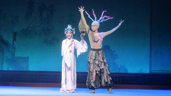 盛大的颁奖典礼过后,梦幻版昆剧《牡丹亭》正式登台。明代大戏剧家汤显祖所著传奇剧作《牡丹亭》将诗情、美蕴、哲思交融互汇,创作出中国浪漫文学的一座高峰,自问世400多年来,历演不衰,享誉海内外。梦幻版昆剧《牡丹亭》由浙艺戏剧系13级昆剧班、音乐系民乐教研室师生共同演绎,撷取原著“至情”之精华,以万紫千红的满园春色为映衬,用别开生面的艺术手法构筑起独特的意向空间,“惊梦”、“寻梦”、“离梦”、“追梦”、“幽梦”、“圆梦”6个主题先后贯穿始终,将杜丽娘和柳梦梅这对有情人的相思相悦演化成令人憧憬向往的绝美胜境,再现了缠绵400多年的生死至情和道不尽的前生缘、今世梦。浙艺版《牡丹亭》的所有演员都正值二八年华,是一部充满青春气息的剧作。为了突出与以往版本的不同亮点,梦幻版《牡丹亭》更是增添了翩然起舞的众花神、婀娜摇曳的柳树等具有极佳视觉效果的全新元素,一经亮相便艳惊四座。现场,落英缤纷的花瓣从舞台上方徐徐坠落,似真似幻的烟雾缓缓缭绕,仿佛真的将观众带入了这对年轻人情定终生的牡丹亭下。演出过程中,观众为杜丽娘、柳梦梅的秀雅所吸引,也为群演腾空、做打等绝活报以热烈掌声。演出结束后,热情的观众久久不愿离去,纷纷跑上舞台与演员合影留念。