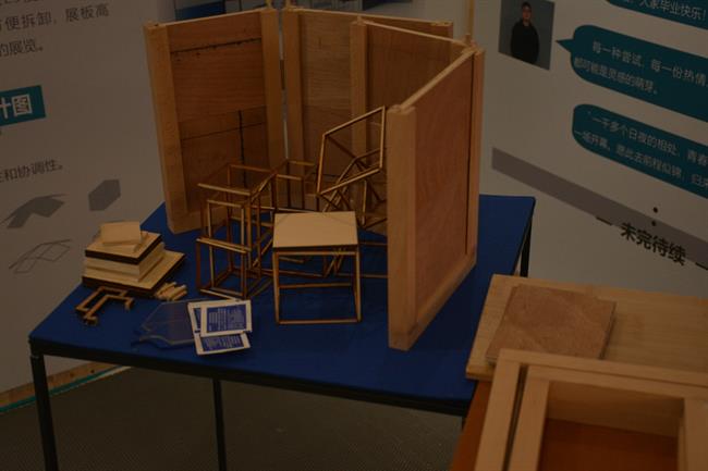 “原生——混凝土家居设计”通过在水泥上刻画原始人类和现代人类的活动,连接起人类发展历史,混凝土家具代表对工业文化精髓的再创造;“SHOW BOX——百变移动展箱设计”,毕业生们的灵感来源于布展,过大的展具导致现场不方便移动且人员不够时难以完成布展,因此他们设计了一款百变移动展箱,把简洁、百变、稳定等思想注入其中。