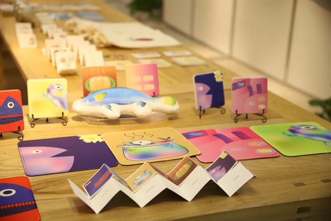 此外,学生们还以各自的家乡美食为设计主体,设计了多款胸针、书签、明信片等衍生品供参观者选购。