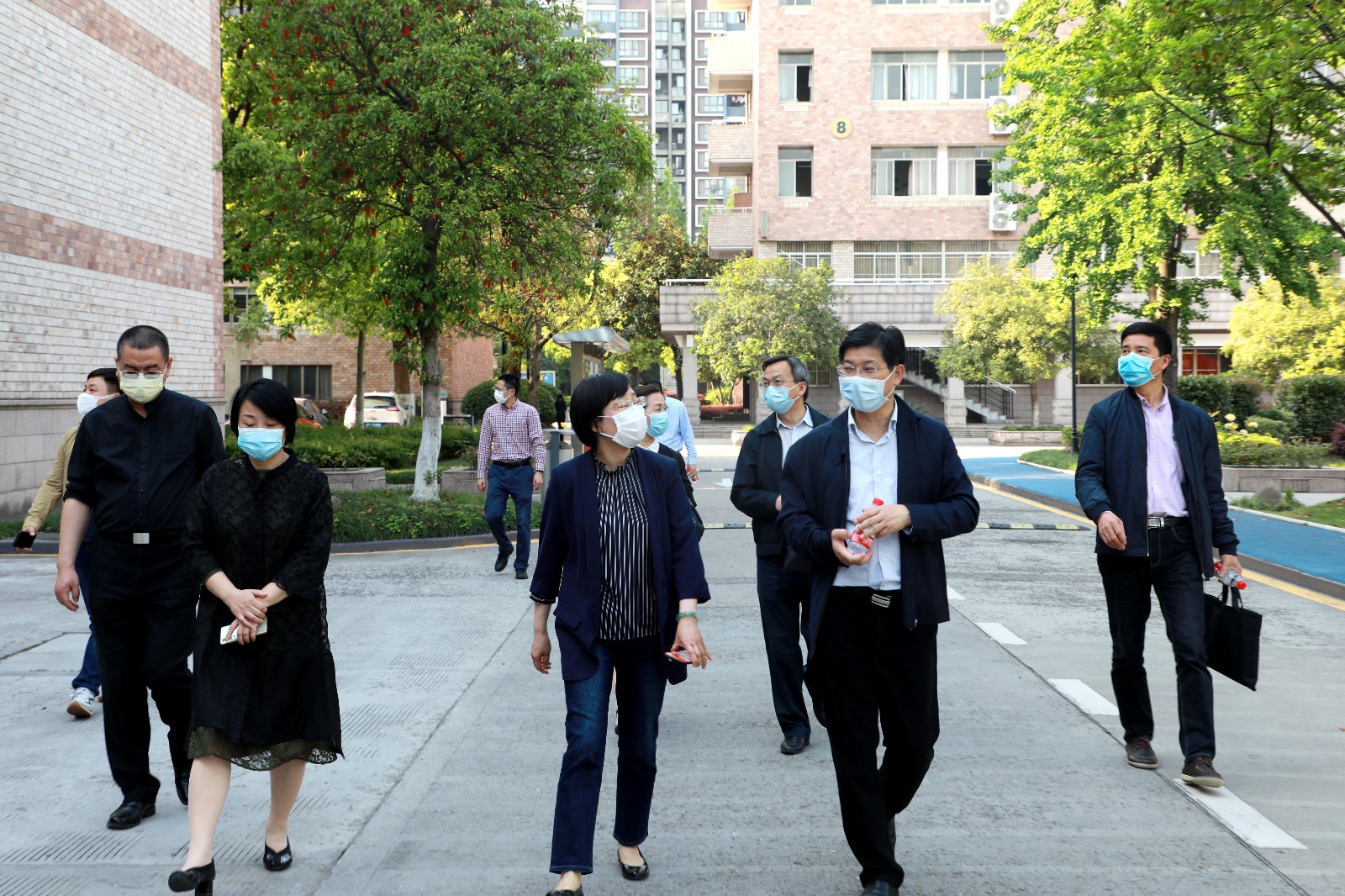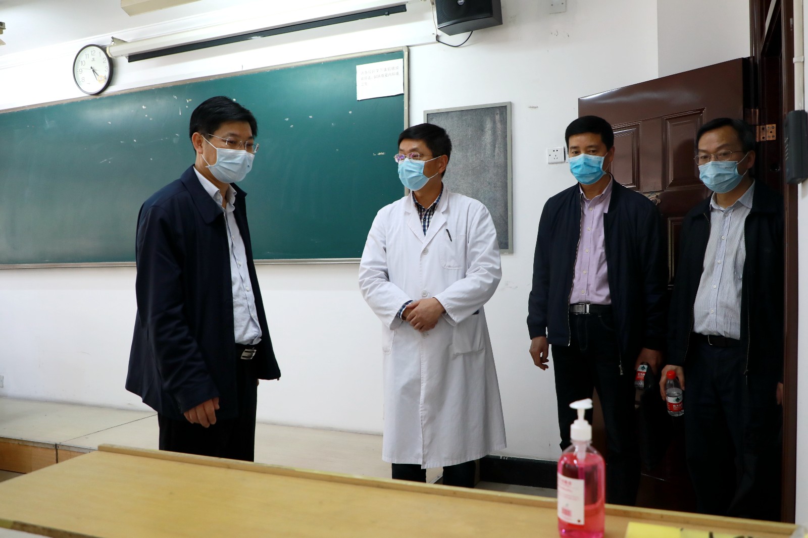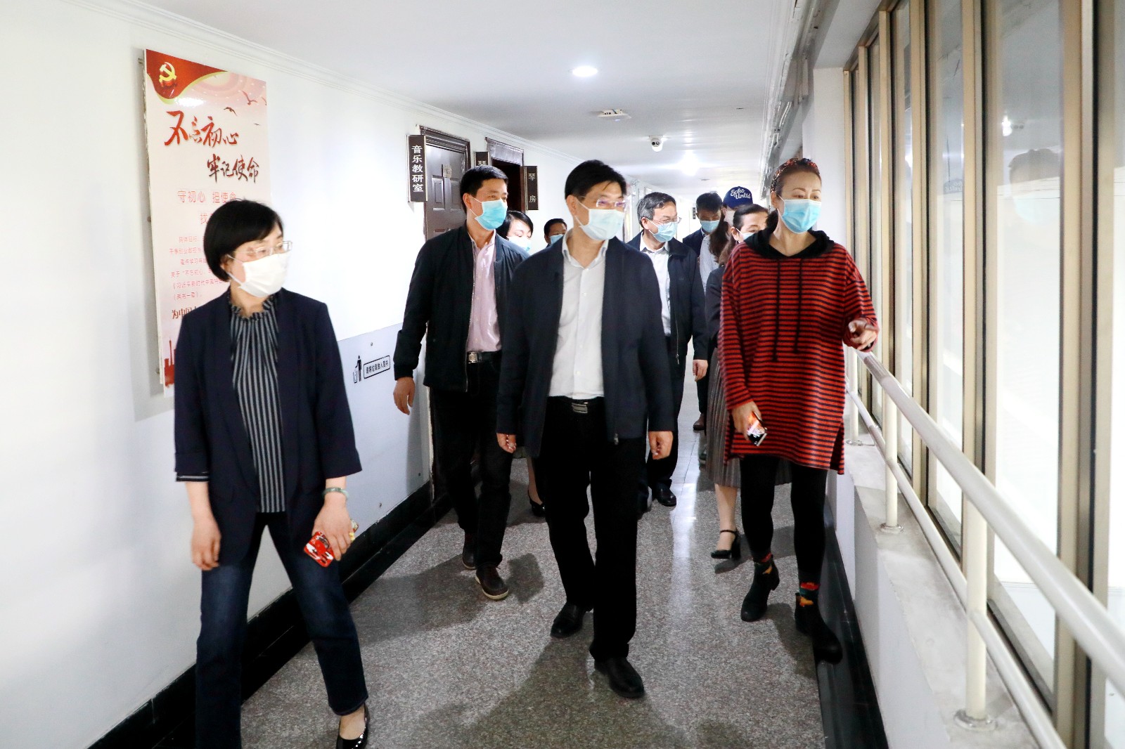 4月29日下午,省教育厅党委副书记干武东一行来我校检查指导疫情防控和开学返校准备工作,校党委书记朱海闵、院长黄杭娟、副院长沈军甫、支涛陪同并介绍相关情况。