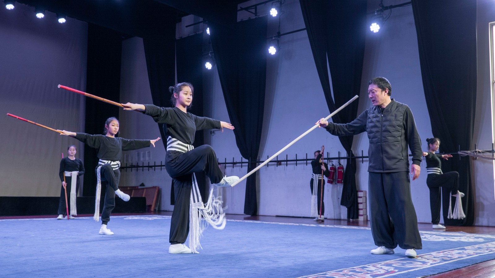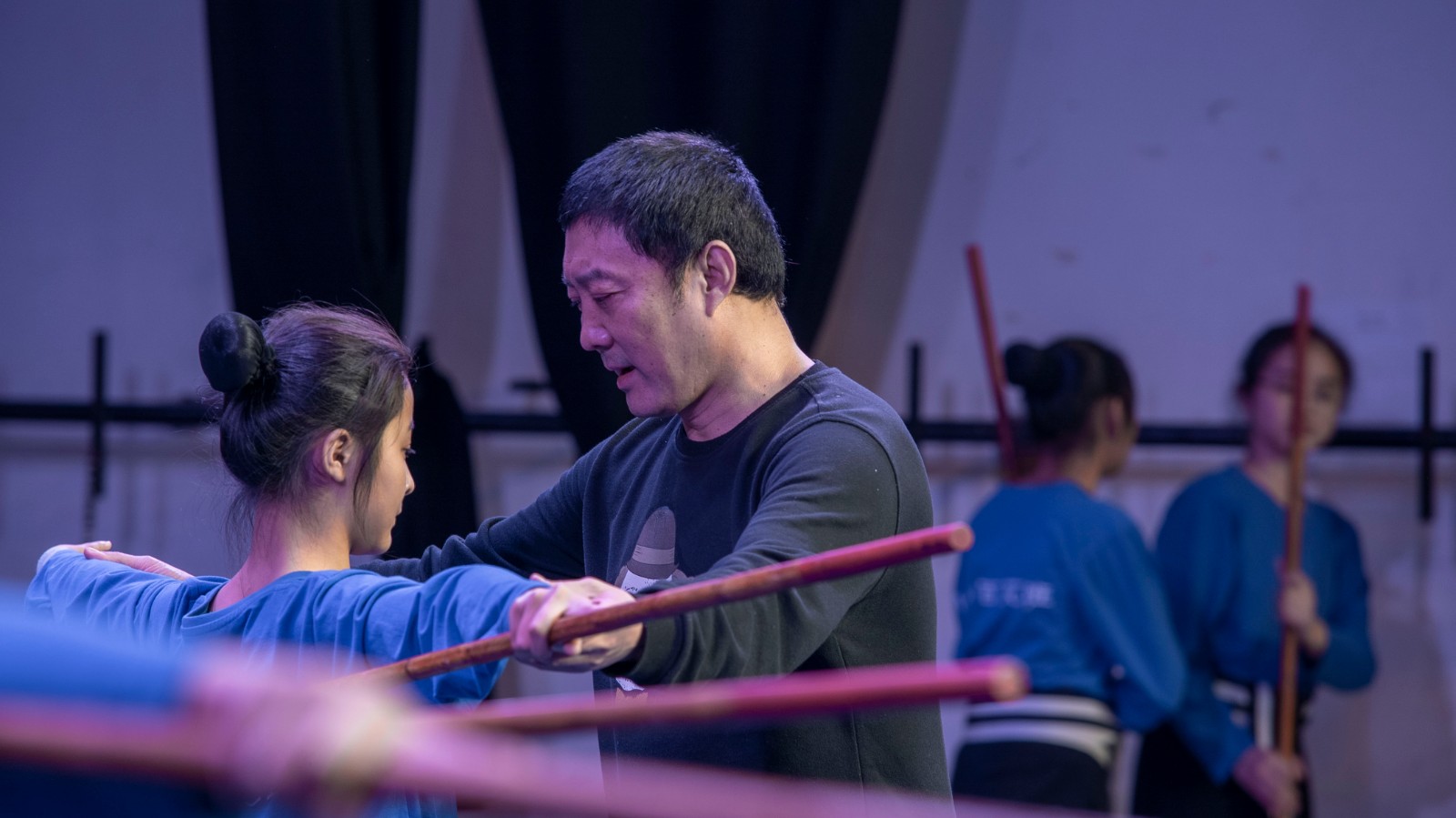 授课过程中,奚中路亲身示范,悉心教导。除了剧目相关知识的教授,奚中路还根据学生实际情况针对性地指导学生跑圆场、练习跨腿、盘腿等基础功法。在为期一周的授课过程中,学生们获益良多。19小百花班陈子心说:“在老师给我们摆好动作之后,一开始我们耗不了多久手就开始抖了,肩膀、手掌、后背也开始不受控制,但老师告诉我们要坚持再坚持,逐渐可以坚持更长时间,到现在有些动作不需要老师说,就知道该放在哪儿了。‘耗’让我们的动作更加精炼,也让我懂得了‘坚持’。”