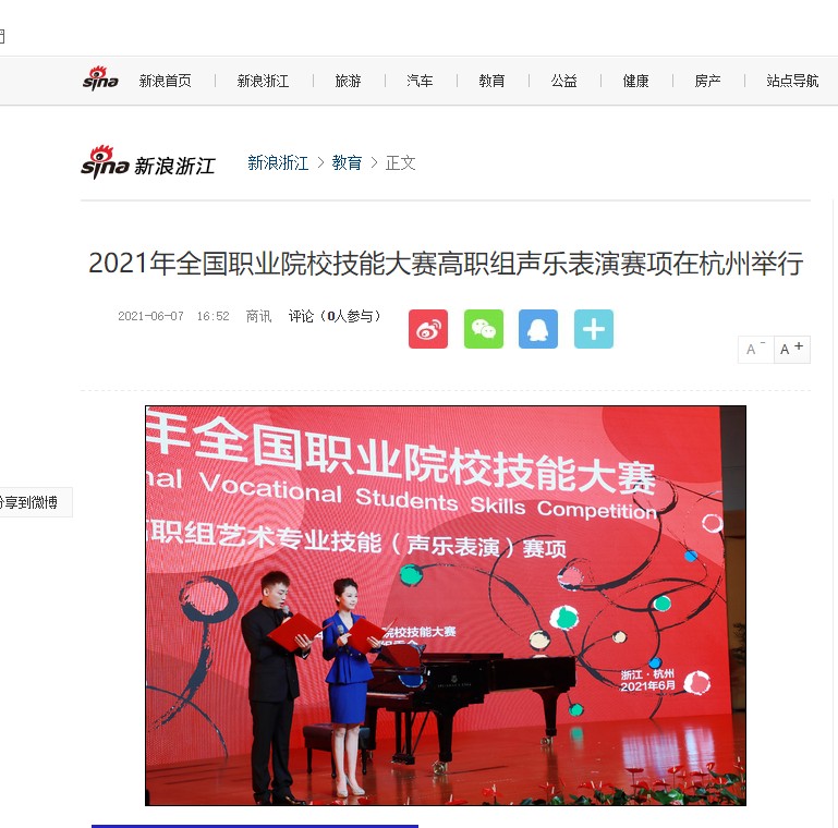 新浪浙江:2021年全国职业院校技能大赛高职组声乐表演赛项在杭州举行