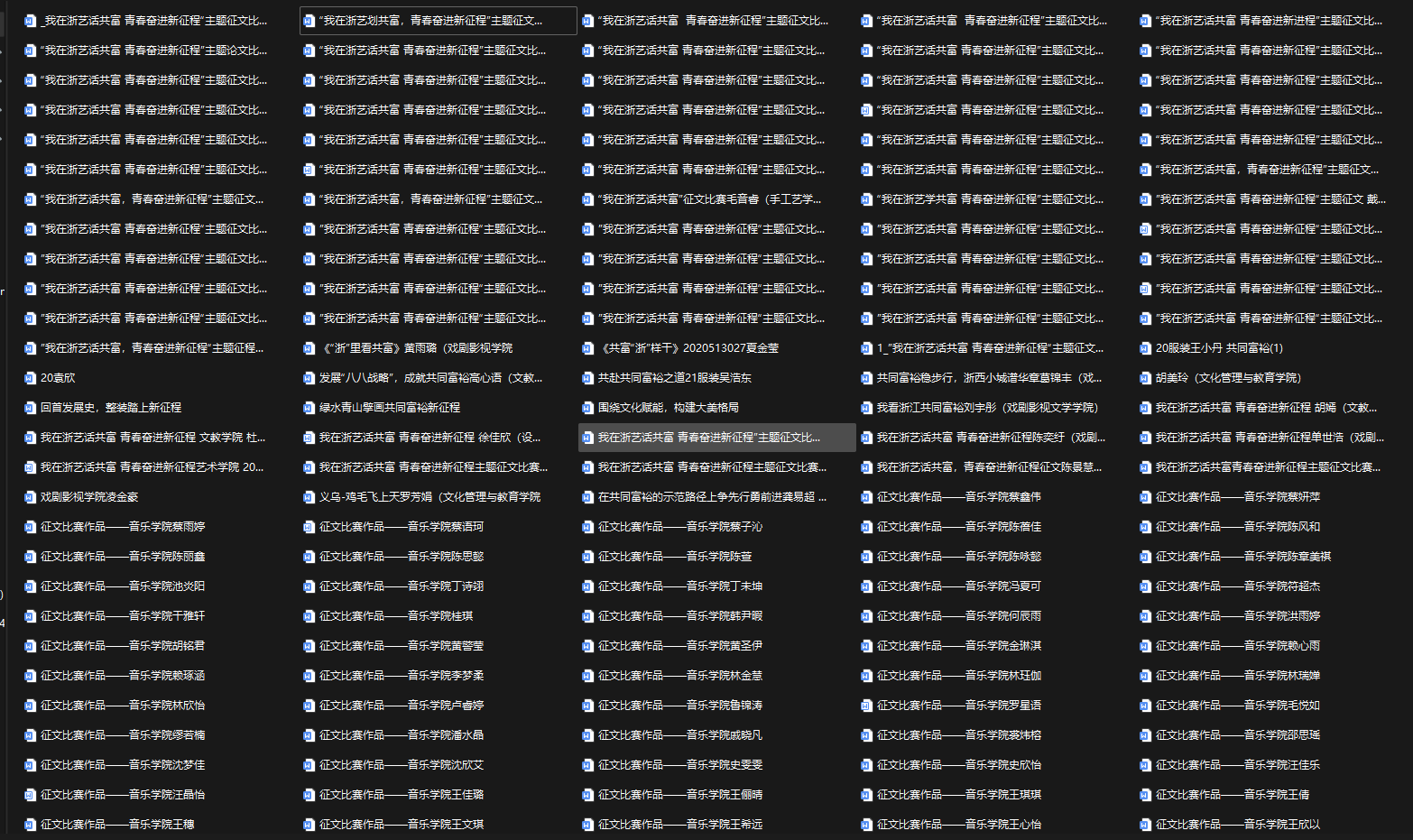 在主题征文版块,重点挖掘、号召来自省内山区的青年学生讲述家乡故事,亲身经历,以青年眼青年心发现“共同富裕看浙江”巨变,共征集优秀作品百余篇,探寻共富密码,凝聚为浙江高质量发展建设共同富裕示范区添砖加瓦的决心和信心,形成“浙艺青年话共富”的整体氛围。