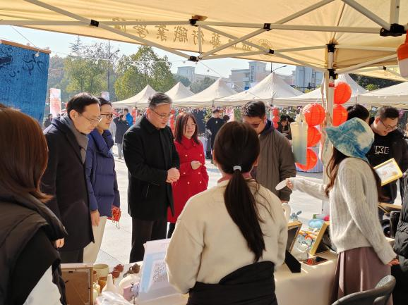 活动现场特邀自然造物、田博匠新、文博公司等非遗企业参与,摊位上非遗手工艺品琳琅满目,引得不少老师、同学驻足观赏。