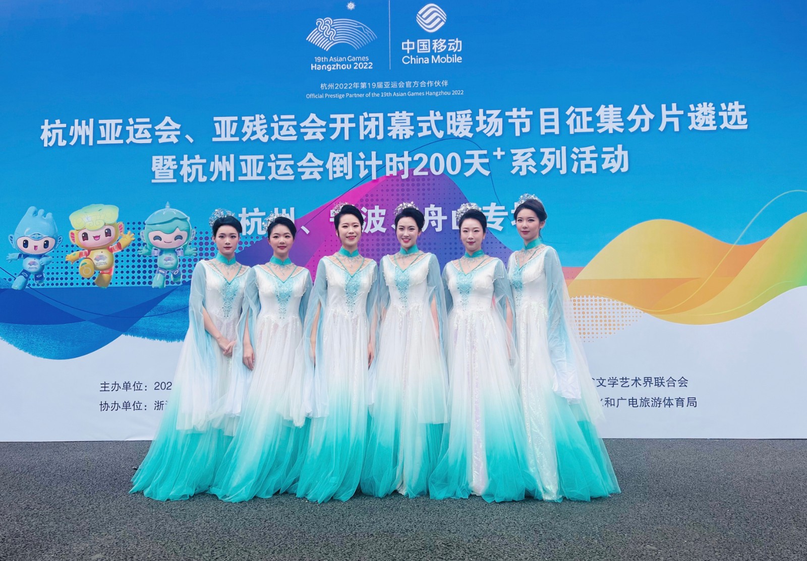 “锦上花”组合是浙艺音乐学院一道亮丽的风景线,是一支屡战屡胜的成熟表演团队,2019年全省茶歌大会、2020年浙江省第11届音乐舞蹈节、浙江省大学生艺术节和杭州市“三江杯”歌手大赛等省内重大赛事活动的舞台上都留下了她们美丽的身影。参与本次亚运暖场节目遴选活动的六名学生顾雨婷、朱芷墨、俞懿珈、傅小蝶、徐颖、傅笑针均已毕业,为了母校的荣誉再度凝聚在一起,重新复排《水印》,最终交上了一份完美答卷。