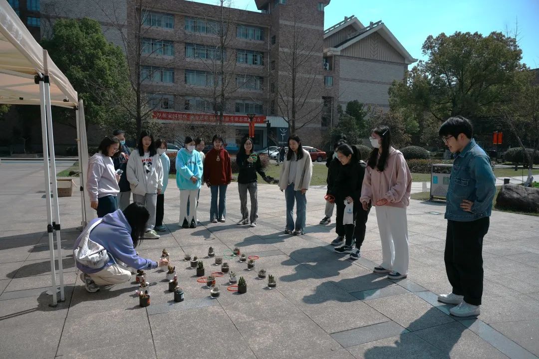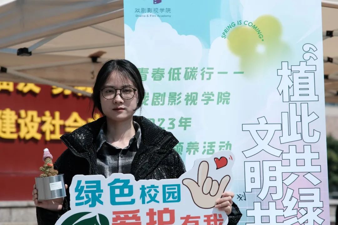 将绿意捧于手心,将春天拥进花盆。在第45个植树节,戏剧影视学院成功举办“植此共绿,文明共享”绿植领养活动。现场开展“知识问答赢盆栽”“趣味套圈得绿植”“云端‘益’起种树”活动。