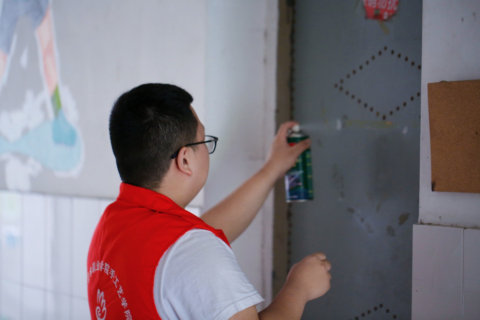 4月4日中午,手工艺学院艺小匠志愿服务队来到立志园11号楼开展清理寝室门口张贴物活动。在活动中,志愿者们手持垃圾袋等工具,热情高涨,对寝室门前的陈旧张贴物进行撕除。
