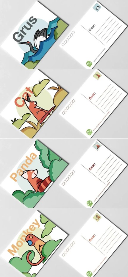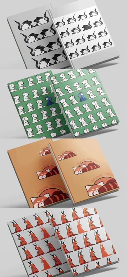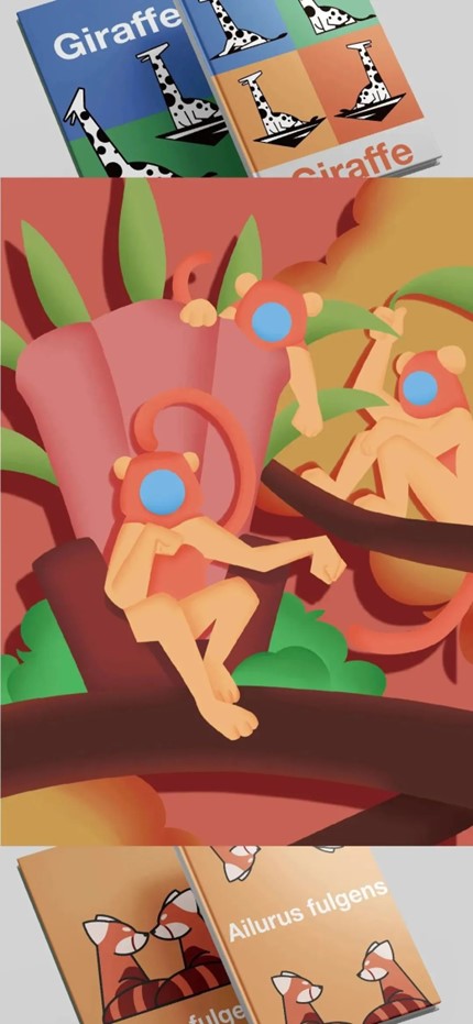 设计说明:本课题以南京红山森林动物园为主体进行相关研学产品的设计,以设计制作研学产品的形式进行动物保护知识推广和研学游活动融合的尝试。既对研学游活动的宽度进行探究和挖掘,又对中小学生传递动物保护知识。本课题以扁平化、简洁明练的风格进行动物形象的构建设计;以贴合动物原形的姿态设计体现动物形象;以高饱和、高明度为要进行色彩设计。以确保研学产品能吸引中小学生阅读兴趣,辅助研学活动开展,且有效传递教育知识给学生。同时,课题组也以动物图形为主要元素设计了大量衍生品周边。