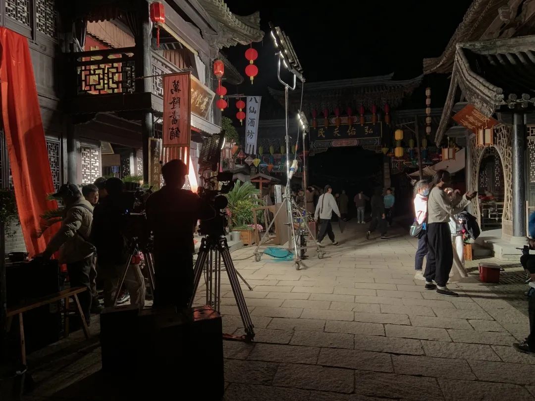 4月28日中午,同学们抵达象山影视城后便立即进行堪景,并分成三个小组进行剧本围读。次日,大家前往各组选定的拍摄场地,亲自布置场地、架设机器等。五一期间,象山影视城人流量大、天气多变,但同学们都克服了困难,时刻保持影视作品创作的状态,顺利完成4部短片和1部纪录片的创作。