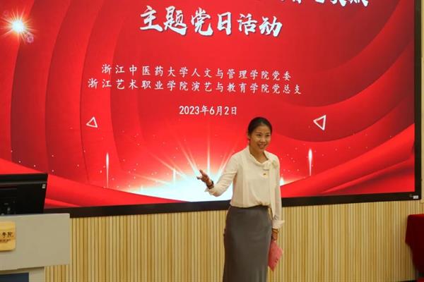 为建设基层服务型党组织,强化学院间的沟通联系,创新基层党建工作载体,提高基层党建工作水平,发挥基层党组织的战斗堡垒作用,6月2日下午,演教学院党总支与浙江中医药大学人文与管理学院党委开展主题党日活动暨党建联建签约仪式。浙江中医药大学人文与管理学院党委副书记(主持工作)梁泽华,副院长荣超,演教学院副院长齐磊,党总支专职副书记钟黎出席,双方党支部书记、党员教师和学生代表等50余人参加本次活动。