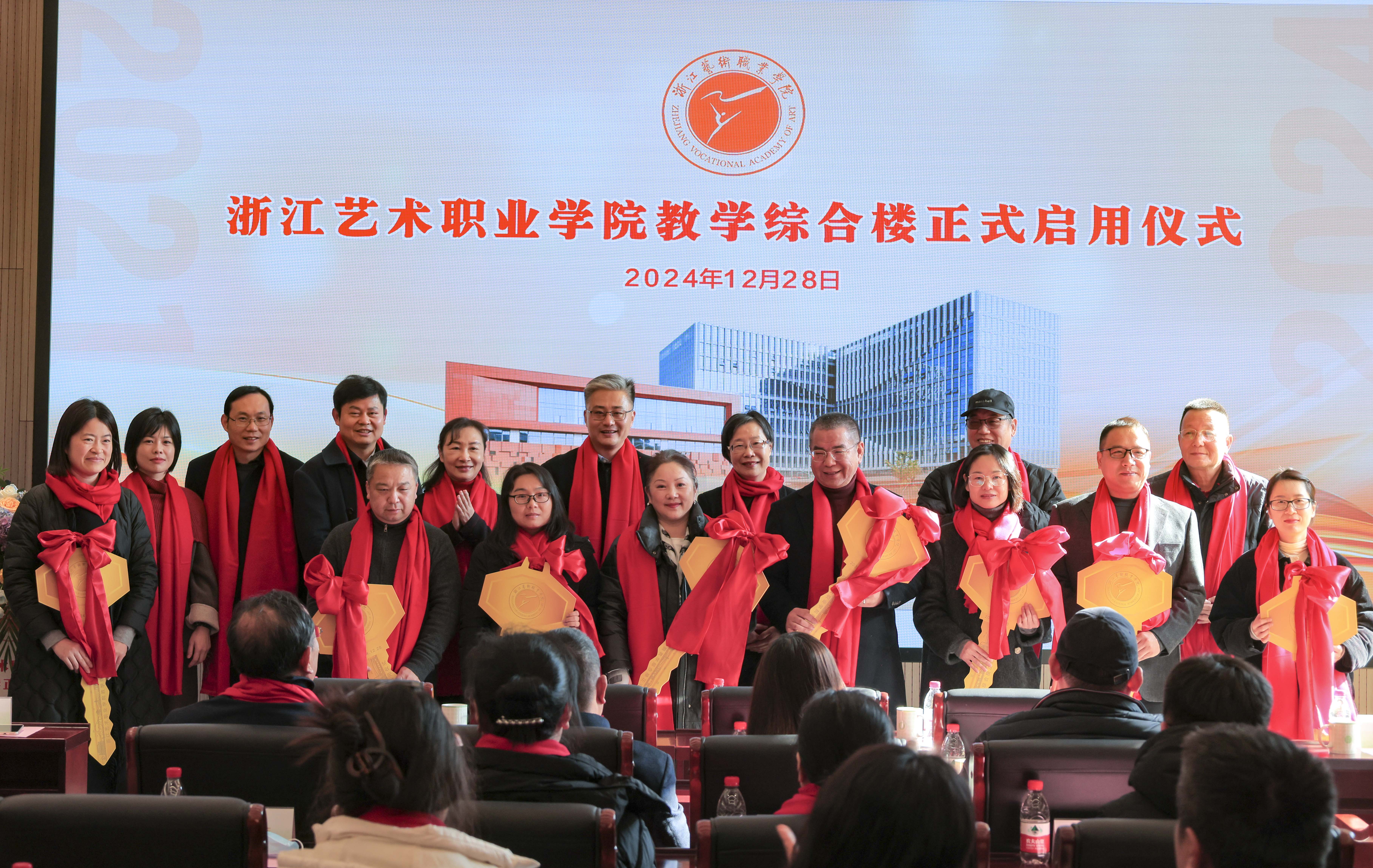 在热烈的掌声与期待中,领导和嘉宾向使用部门授予了教学综合楼的钥匙。这一庄重的仪式,象征着教学综合楼正式交付使用,各学院也将在这片崭新的天地里,开启教育教学的新征程。