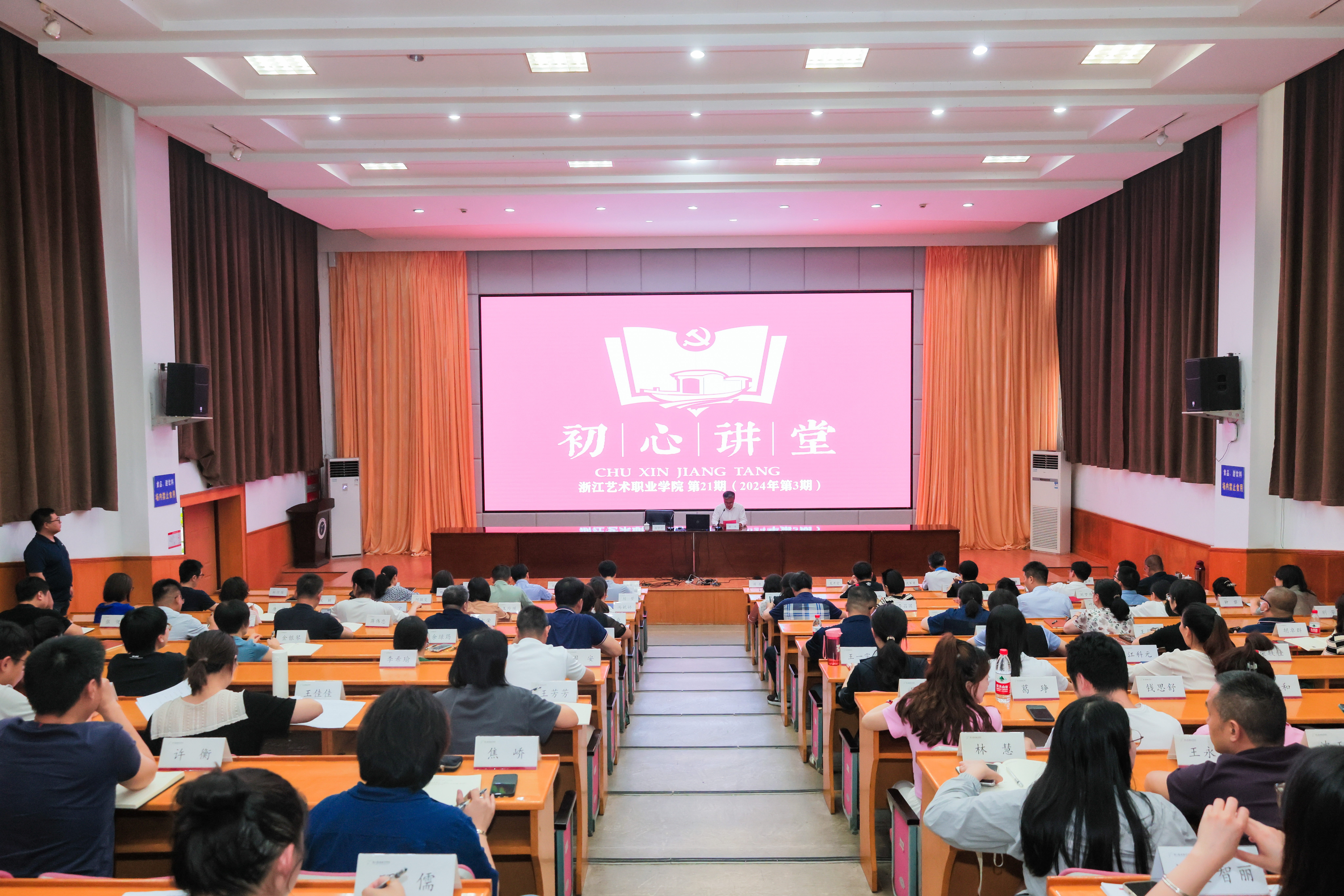 本期初心讲堂,戏曲学院、舞蹈学院、手工艺学院、基础教学部(公共体育部)、马克思主义学院分别作高质量发展二级规划(2023-2027)现场展示和交流分享,对学校半年度综合考核推进、教育教学、科研创作、招生就业、党建工作、专项经费执行、产学合作等情况进行了数据晾晒。